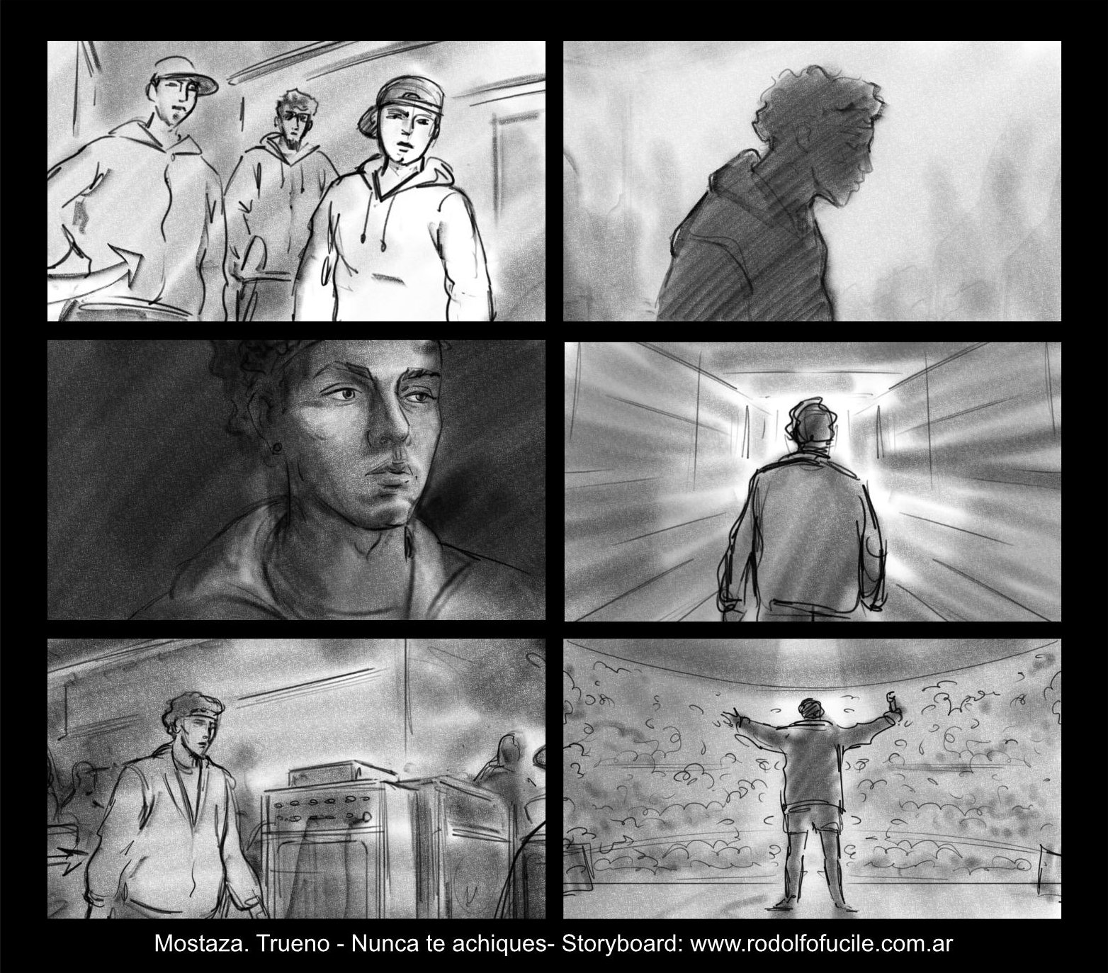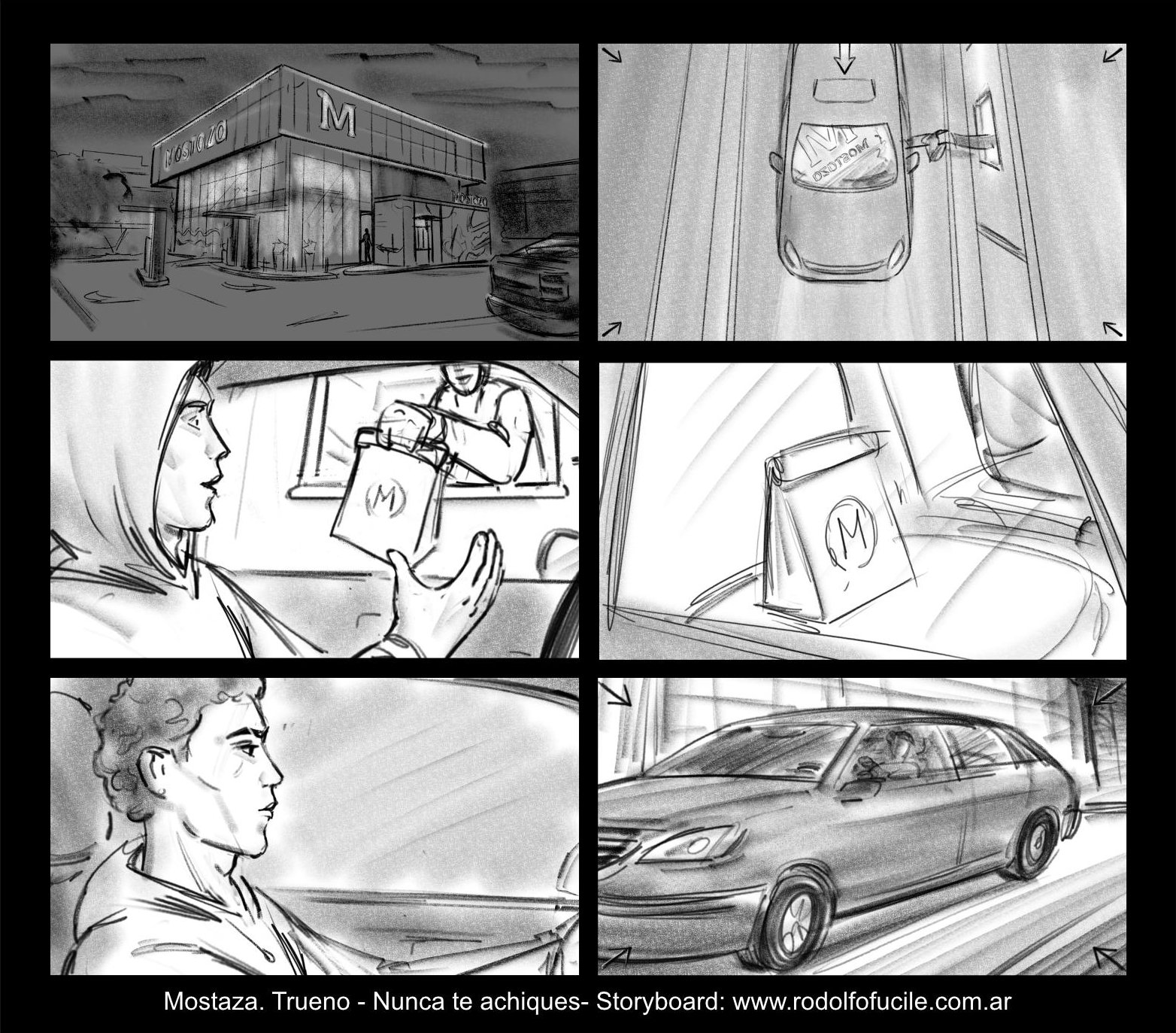 Hace un tiempo dibujé los storyboards de algunas publicidades de Mostaza. Hoy les muestro algunos cuadritos del video protagonizado por Trueno, «Nunca te achiques». Dir. de Juan Manuel Pinzón y Sebastian Sigal (Prod. Winona). Pronto subiré otros de la misma campaña.